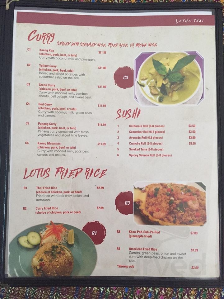 Lotus Thai Cuisine Menu In Athens Tennessee Usa